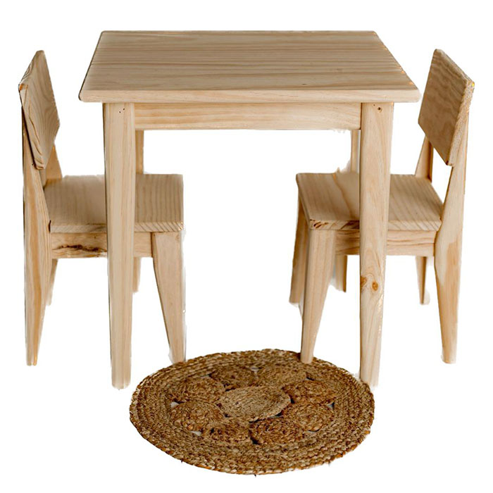 Juego de mesita y sillas para niños de 1 a 5 años en madera de pino maciza.